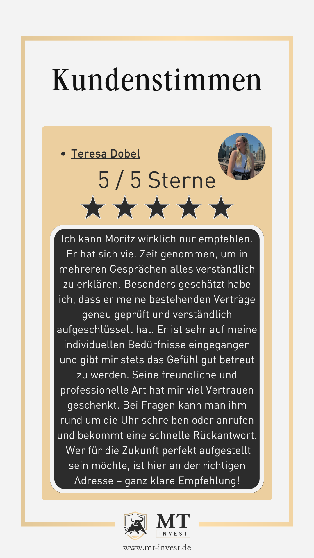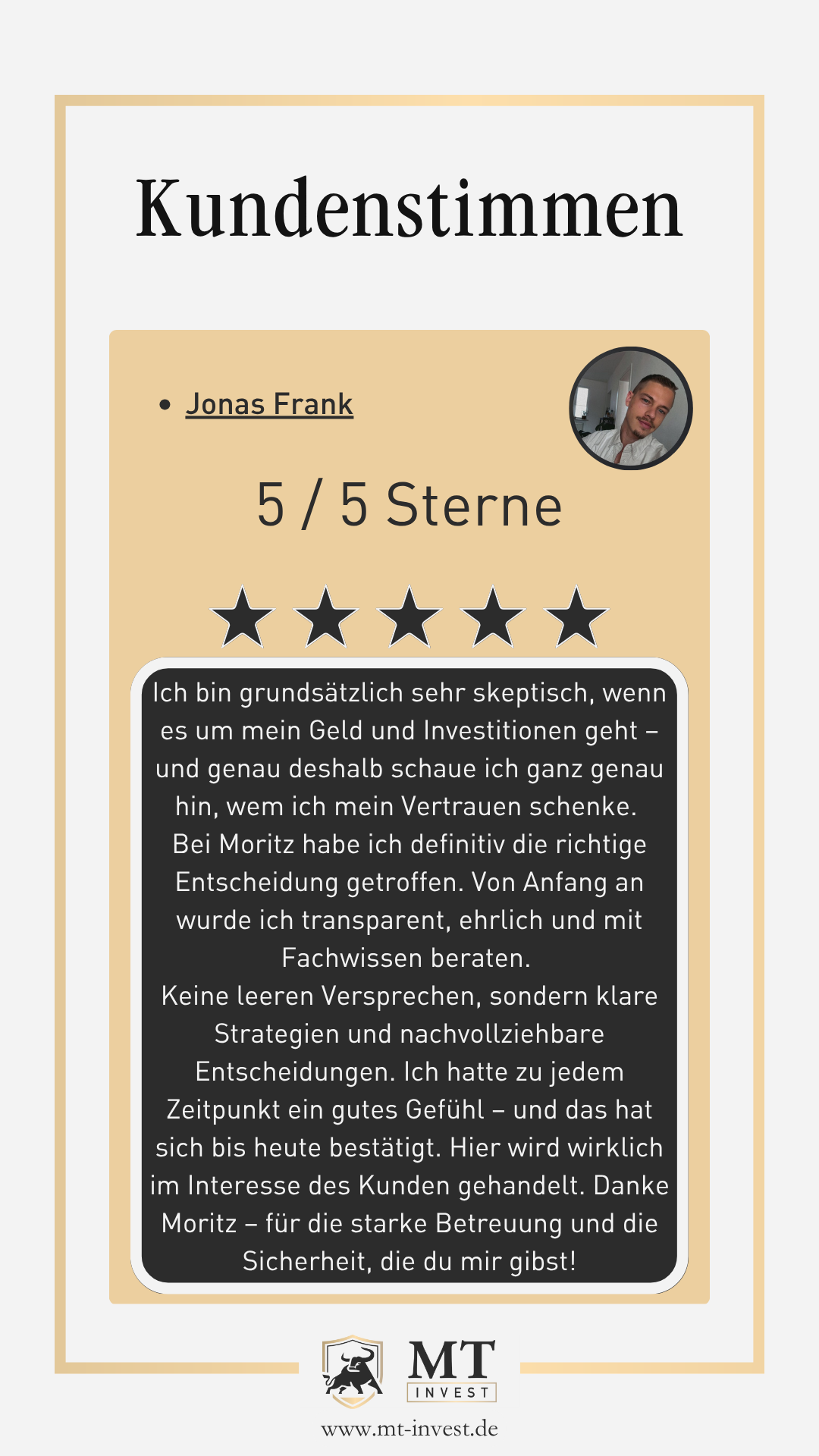 „Genau jetzt. Durch verständliche und transparente Beratung schaffe ich die Grundlage, ein diversifiziertes Portfolio zu entwickeln, das zu deiner Lebenssituation perfekt passt.“